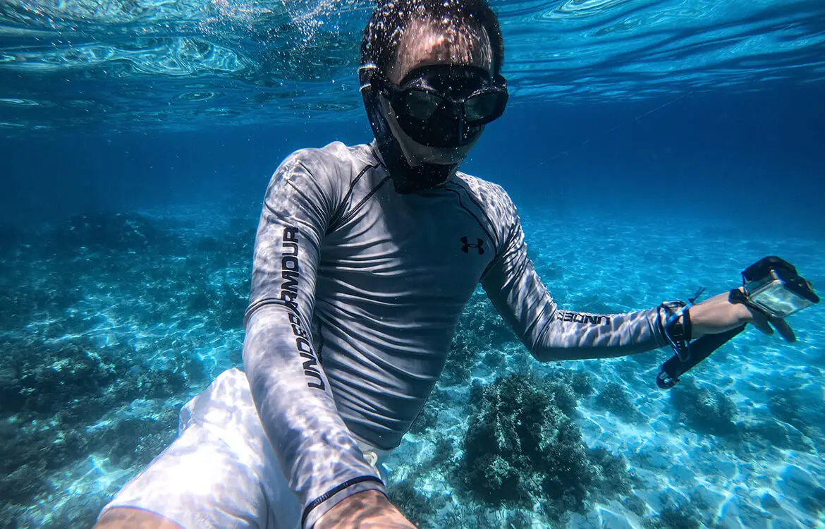Scuba diving is fairly easy to figure out what is: strap a tank on your back and breathe from it under water, and by default, you’re scuba diving. But remove the tank and things get a lot murkier, and often, terms like snorkeling, free diving, and skin diving is used interchangeably. Snorkeling is arguably the most popular activity of the bunch. Thousands and thousands of snorkelers take to the water every year on holidays or in their home waters. Snorkeling is defined as an activity where the participants use snorkel fins, a snorkel mask, snorkel, and possibly a buoyancy vest to help them remain afloat without strain. Now a days, many snorkelers also go for the full face snorkel option.
