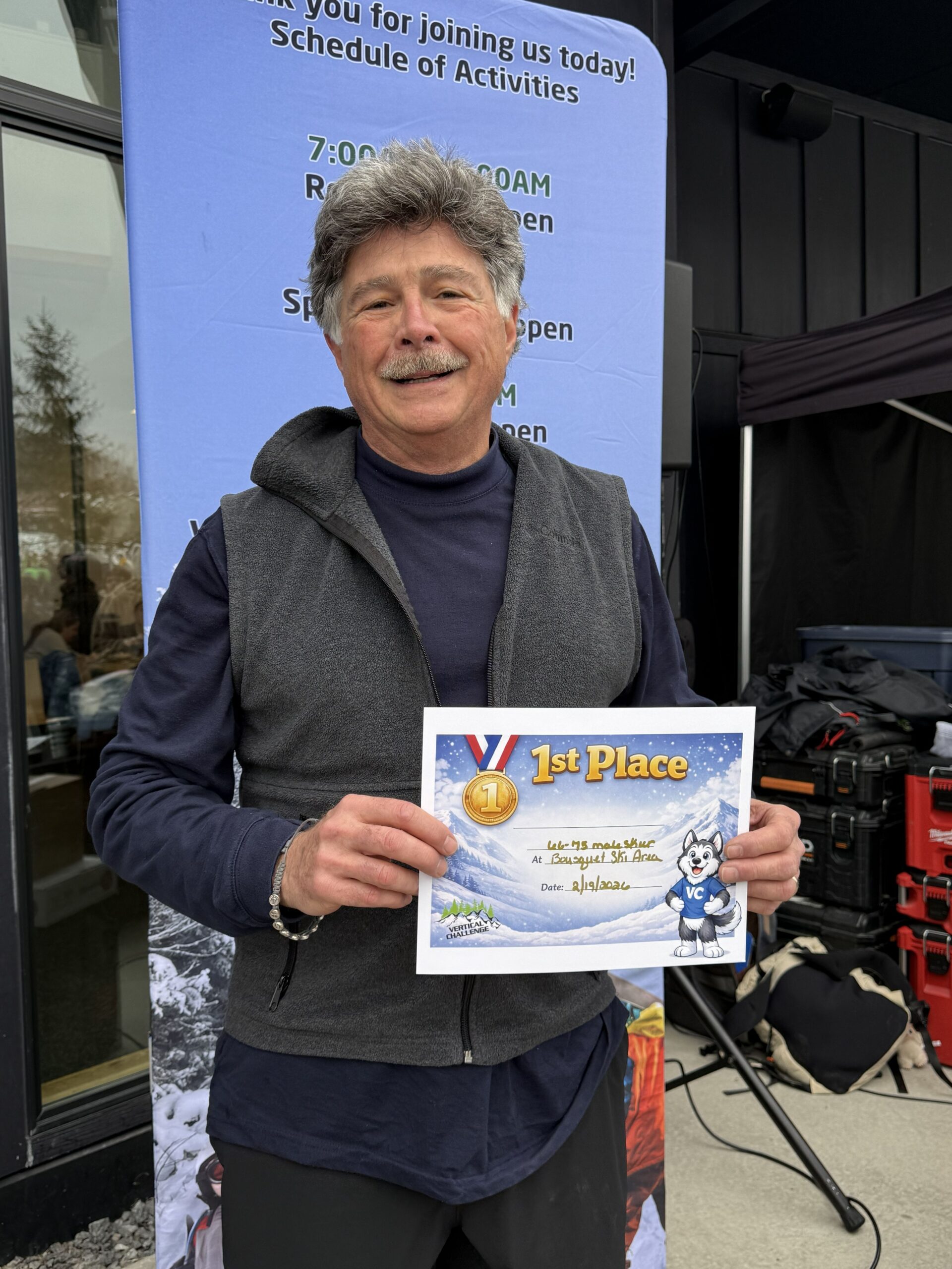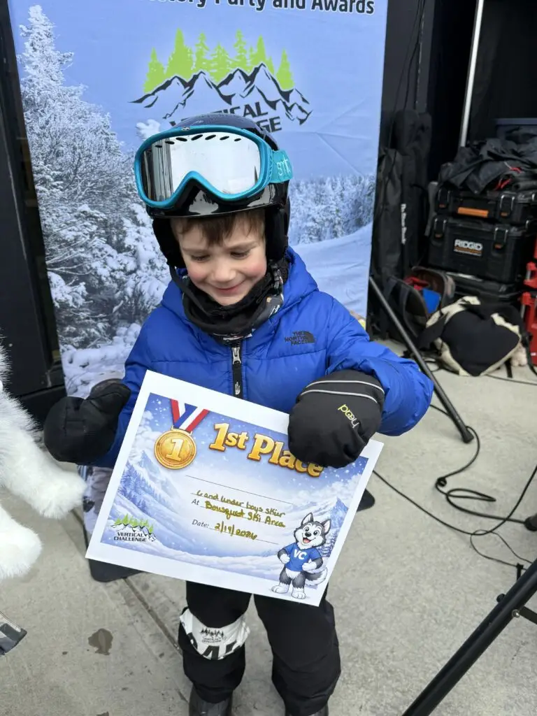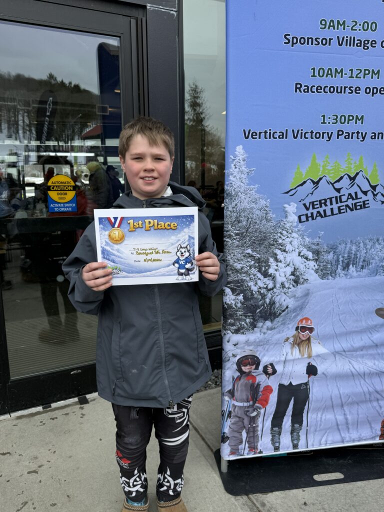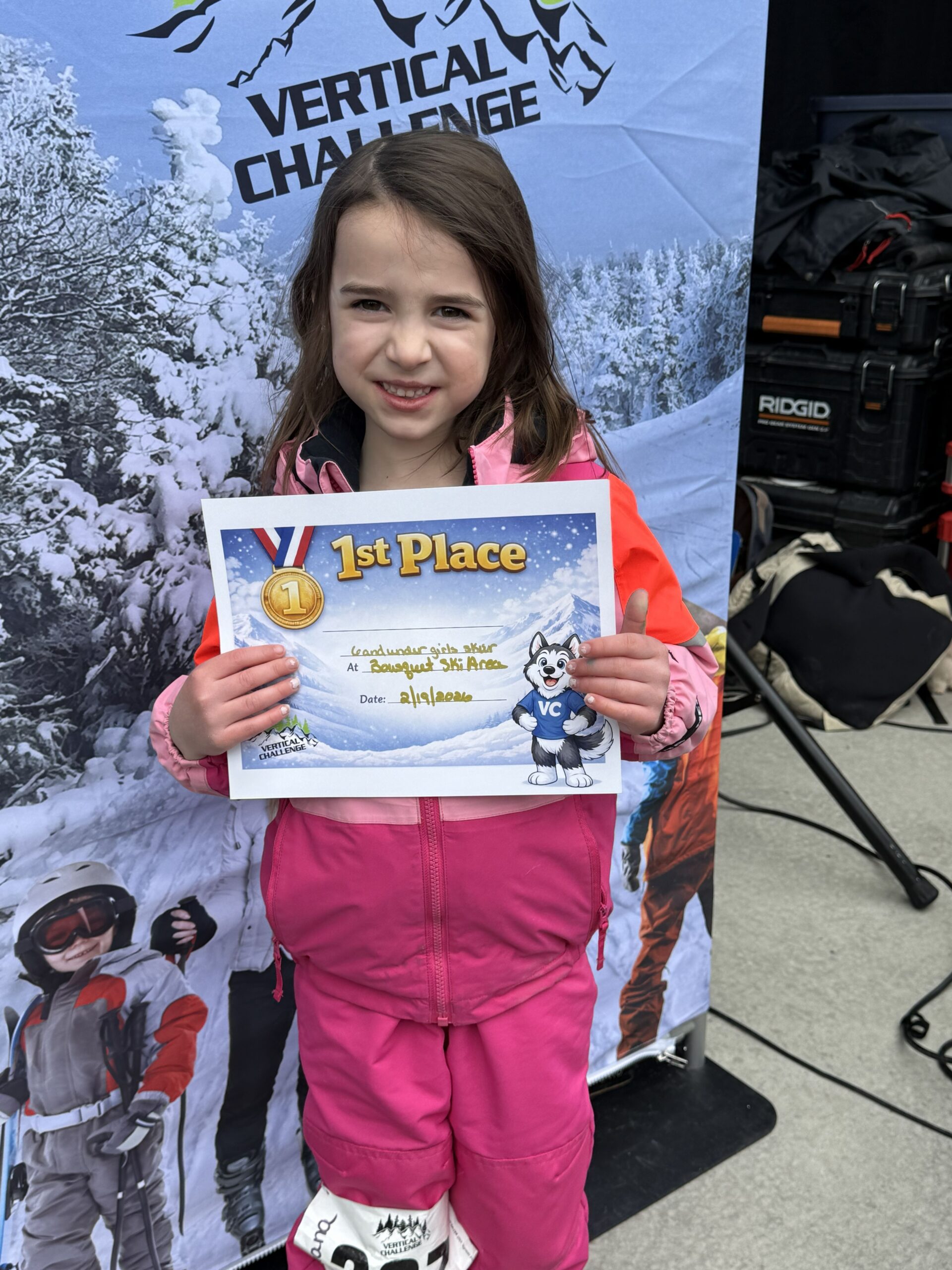 Photos from the Vertical Challenge race at Bousquet Mountain, MA on February 19, 2026. Ski and snowboard racing, family fun, and classic New England mountain conditions.
