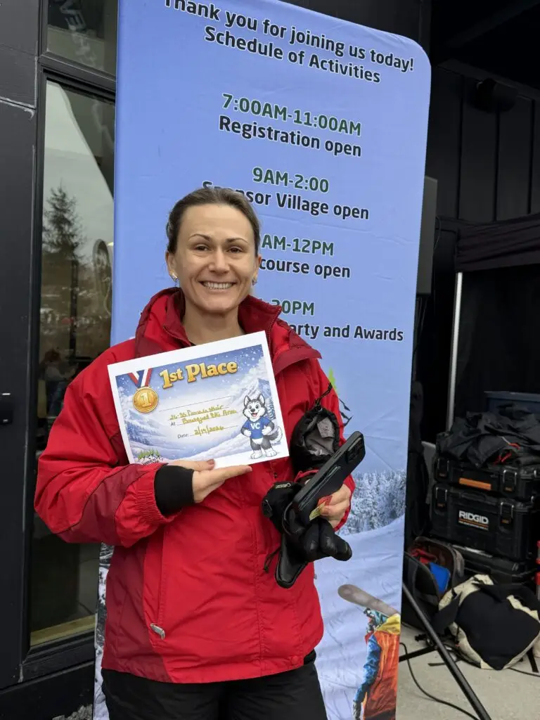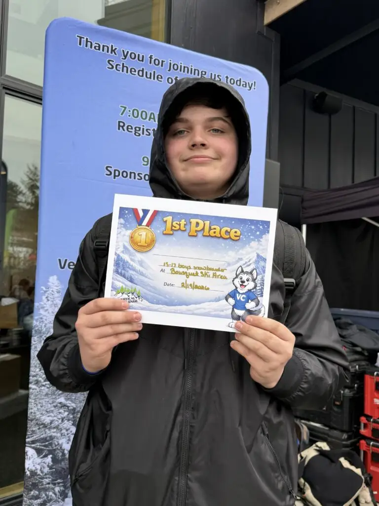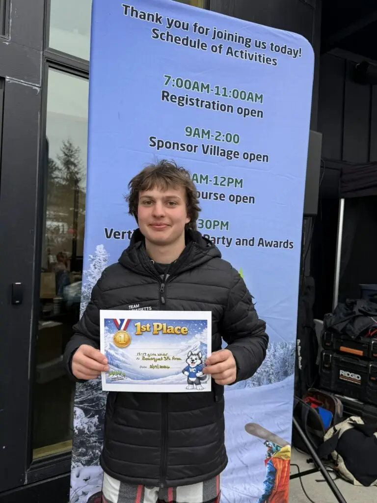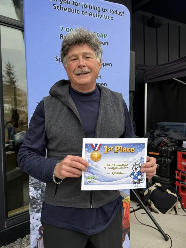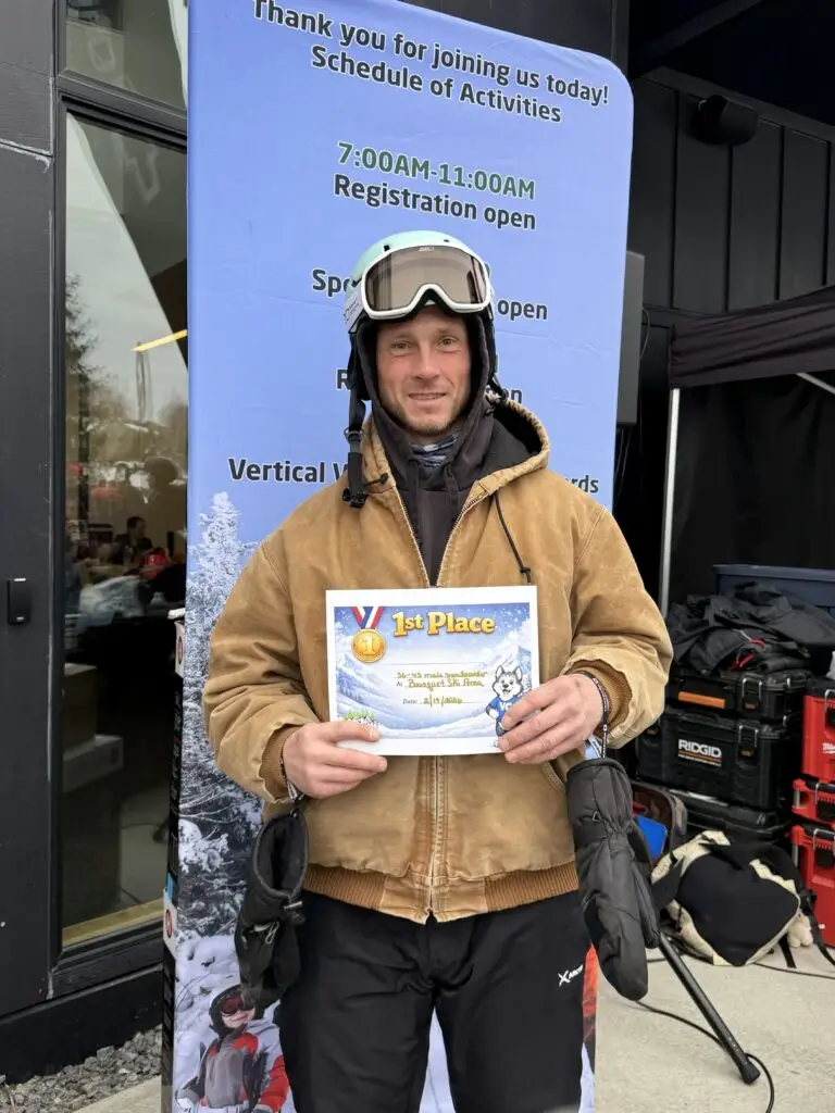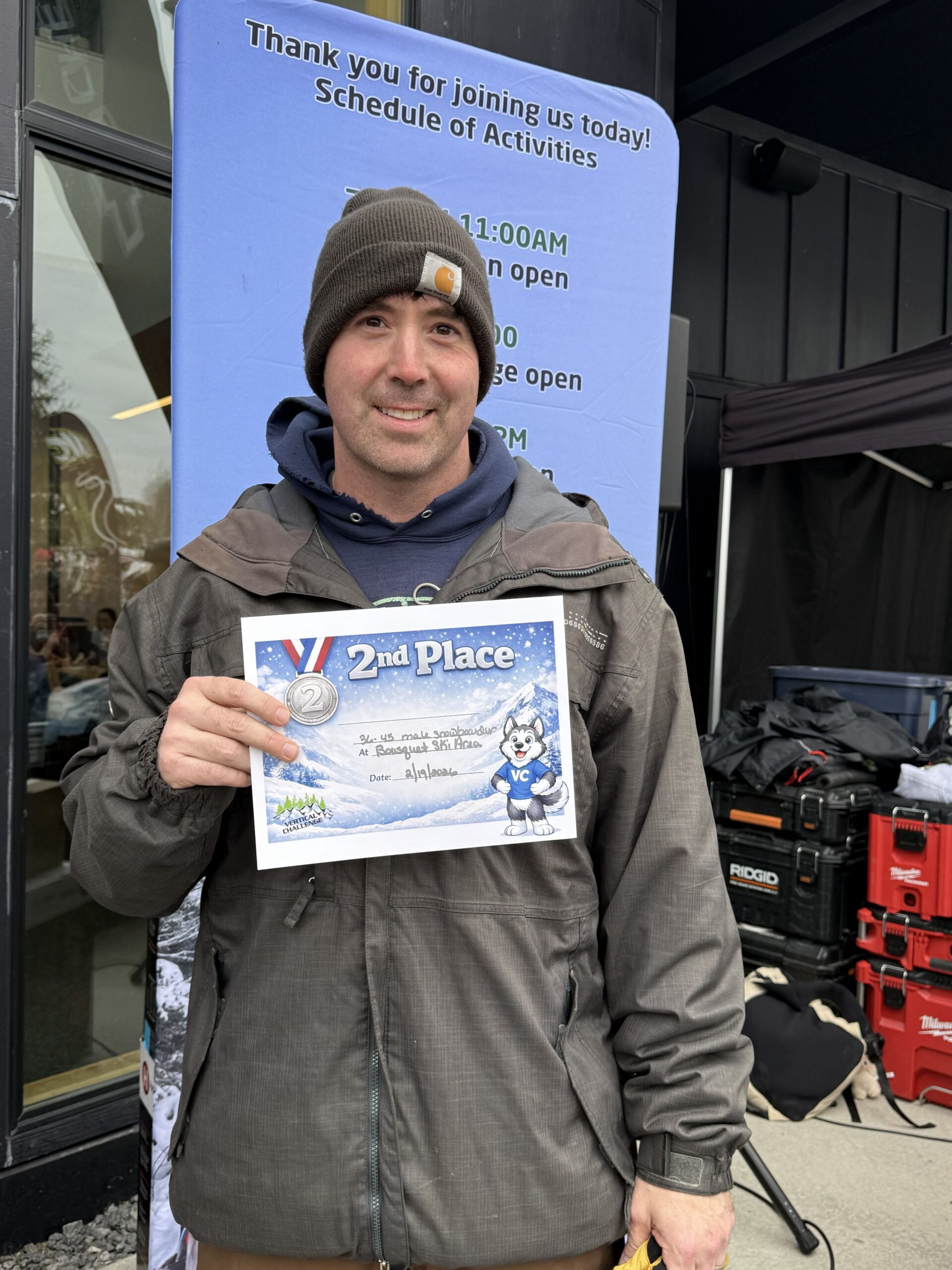 Photos from the Vertical Challenge race at Bousquet Mountain, MA on February 19, 2026. Ski and snowboard racing, family fun, and classic New England mountain conditions.