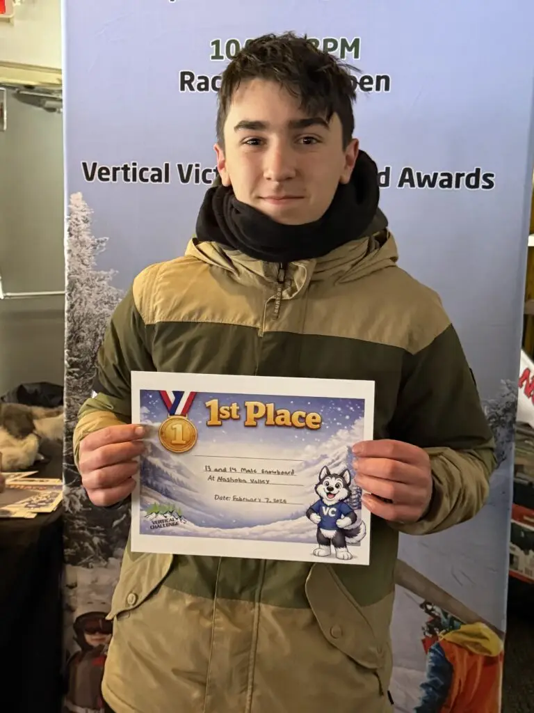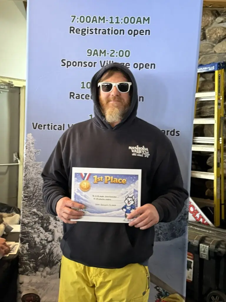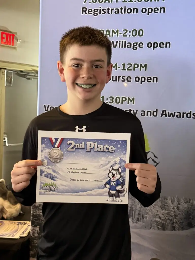 Photos from the Vertical Challenge race at Nashoba Valley, MA on February 7, 2026. Ski and snowboard racing, family fun, and classic New England mountain conditions.