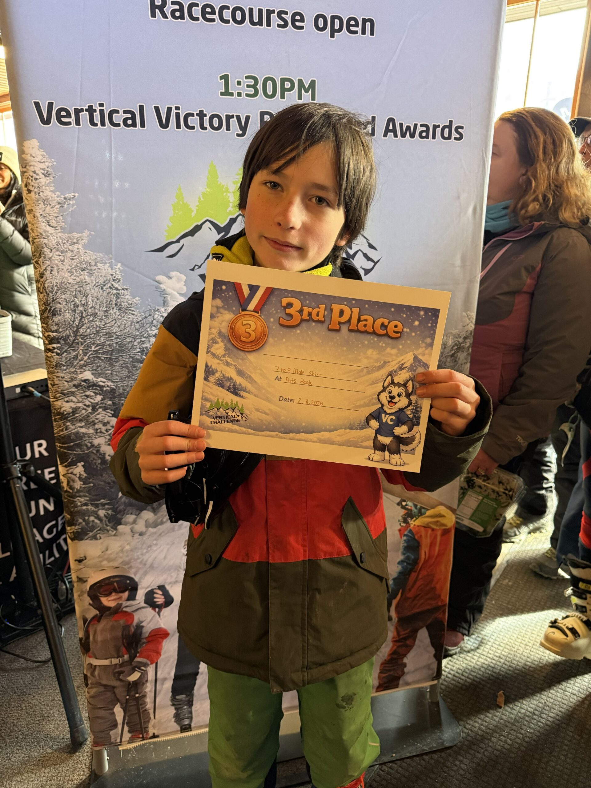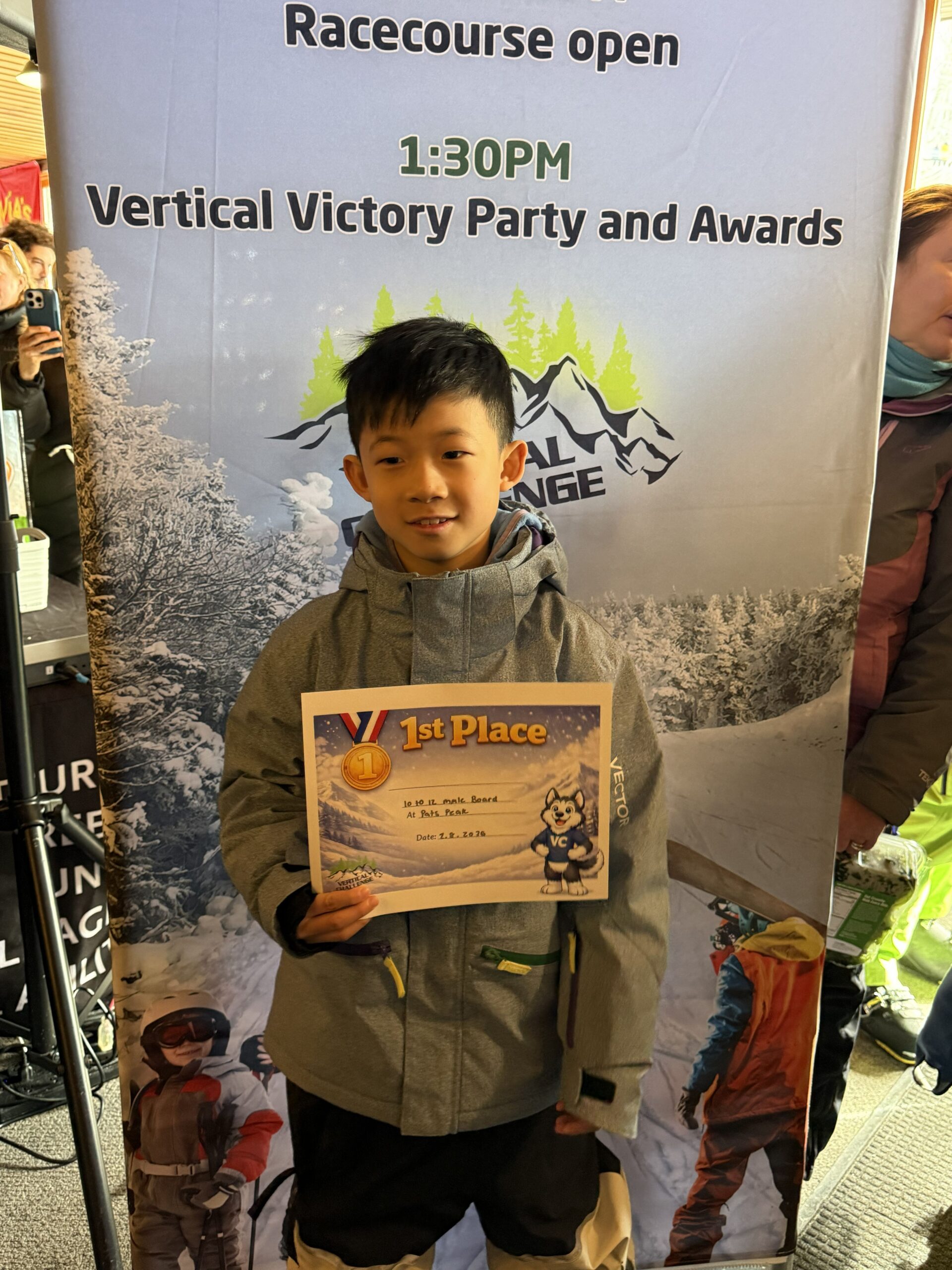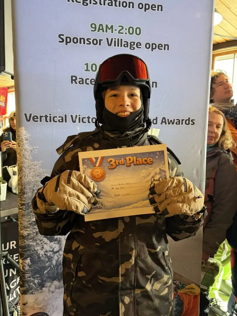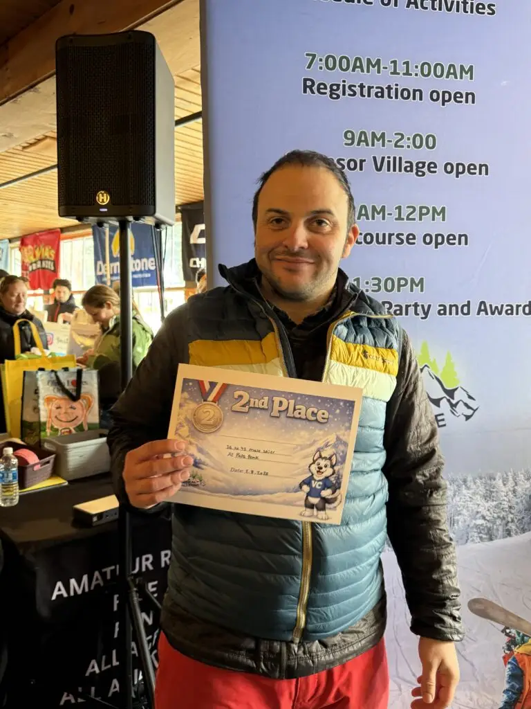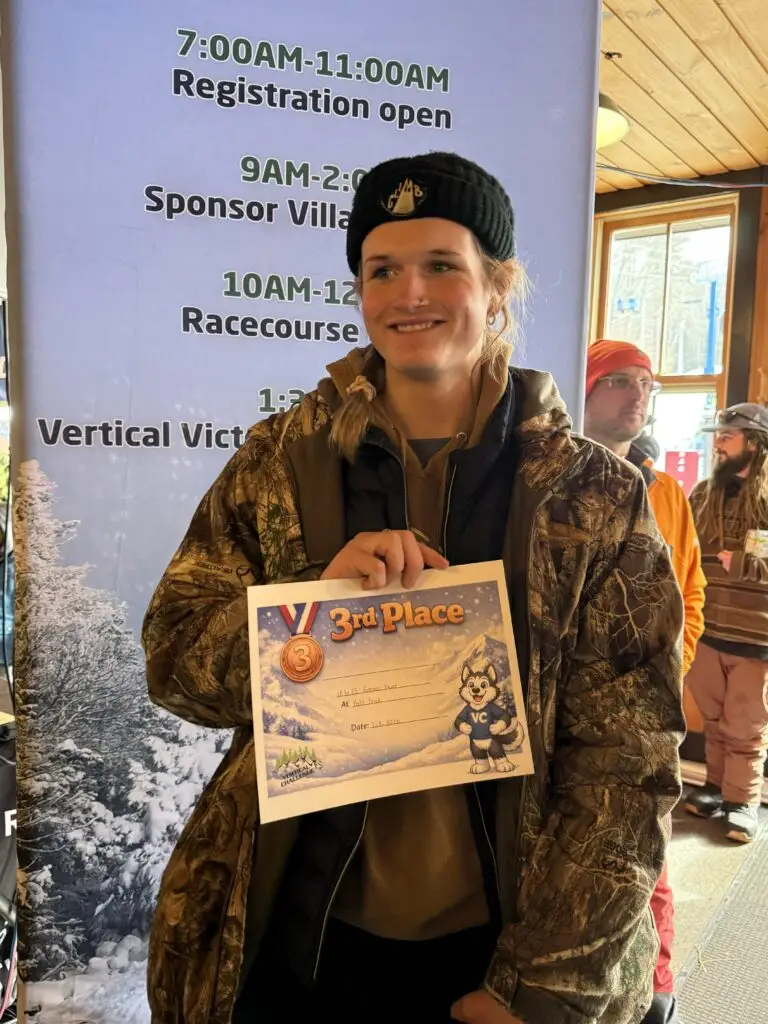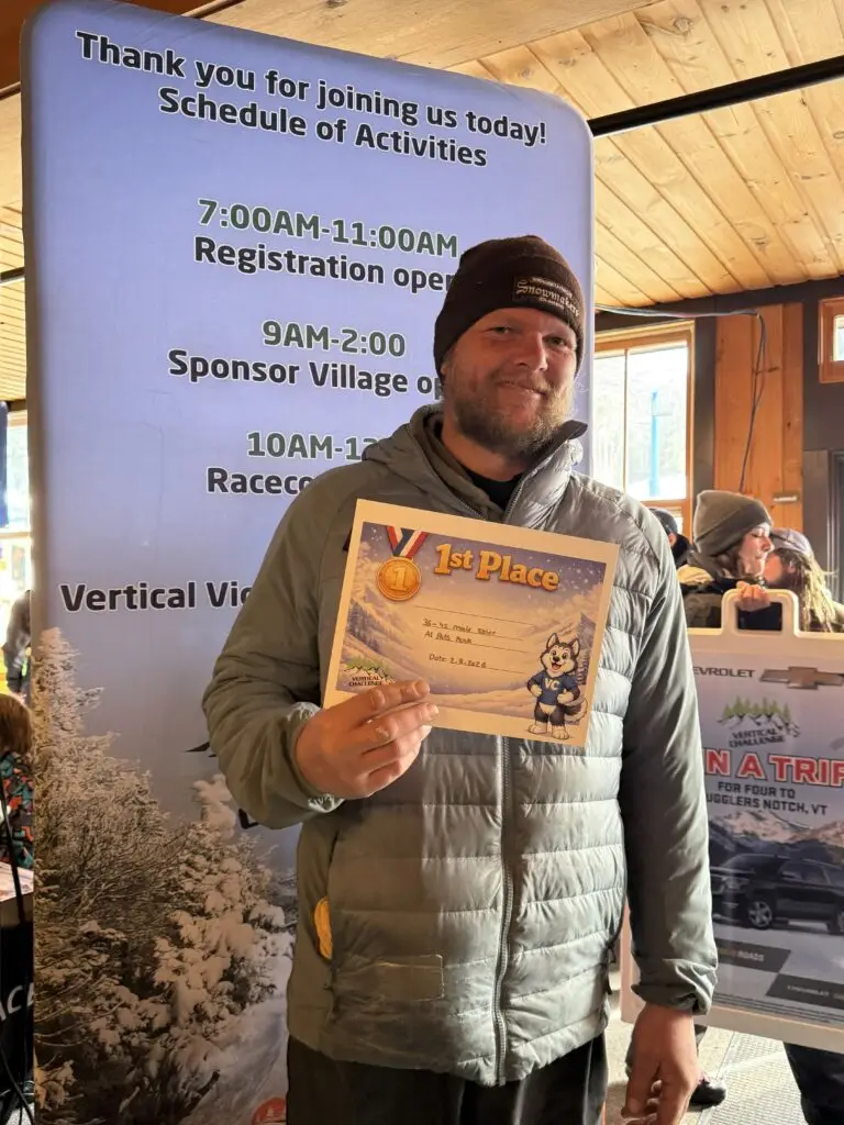 Photos from the Vertical Challenge race at Pats Peak, NH on February 8, 2026. Ski and snowboard racing, family fun, and classic New England mountain conditions.