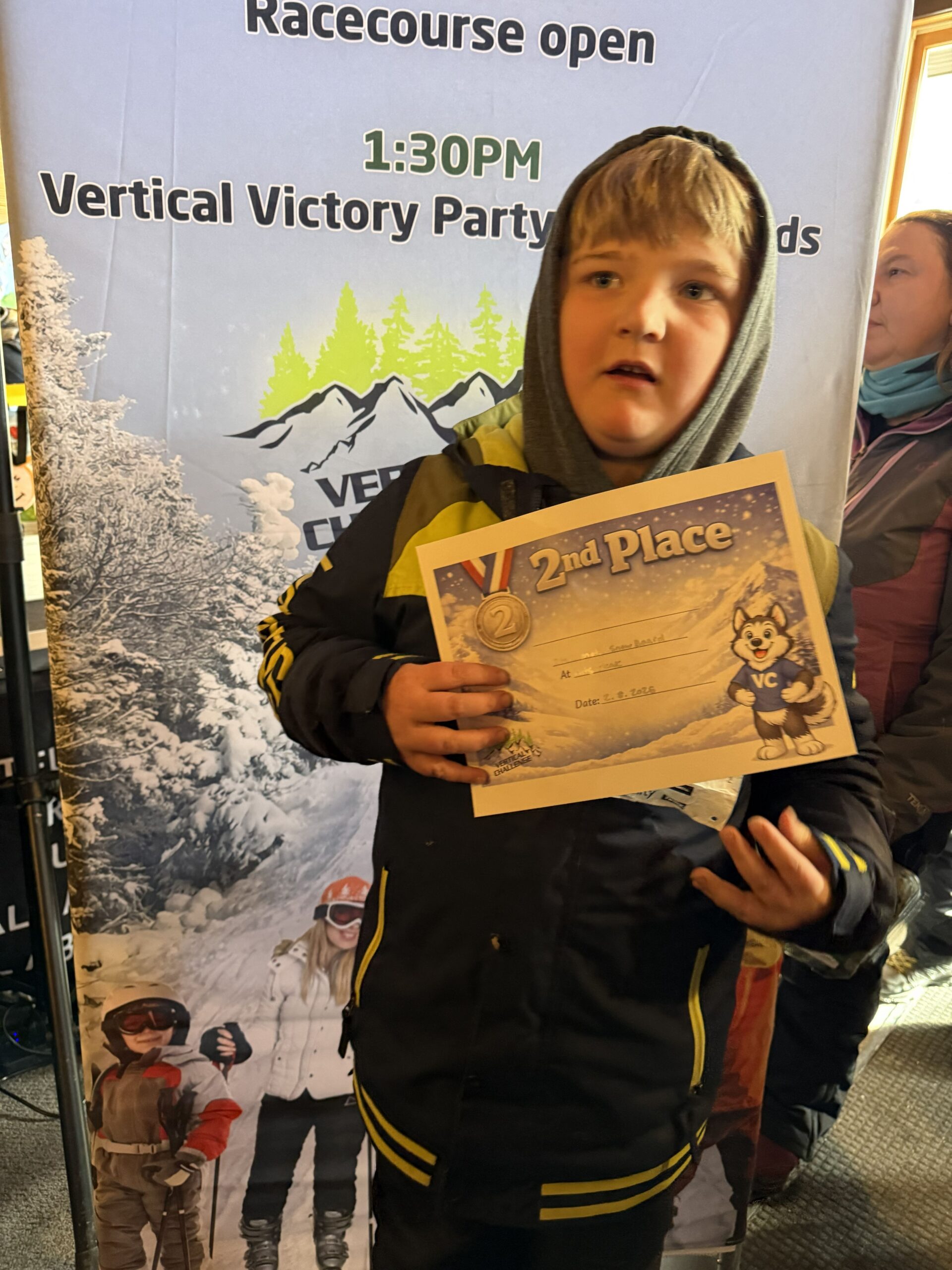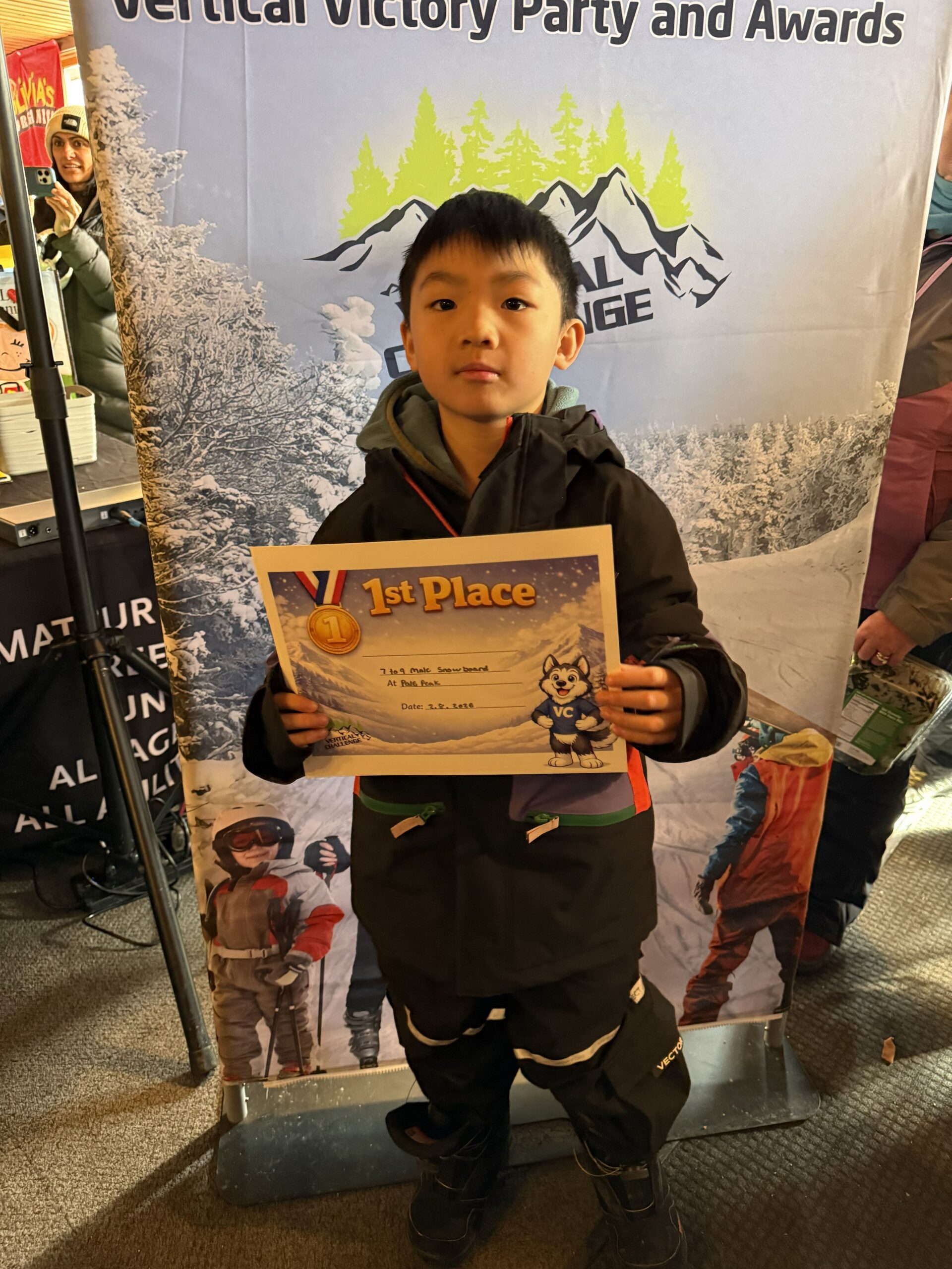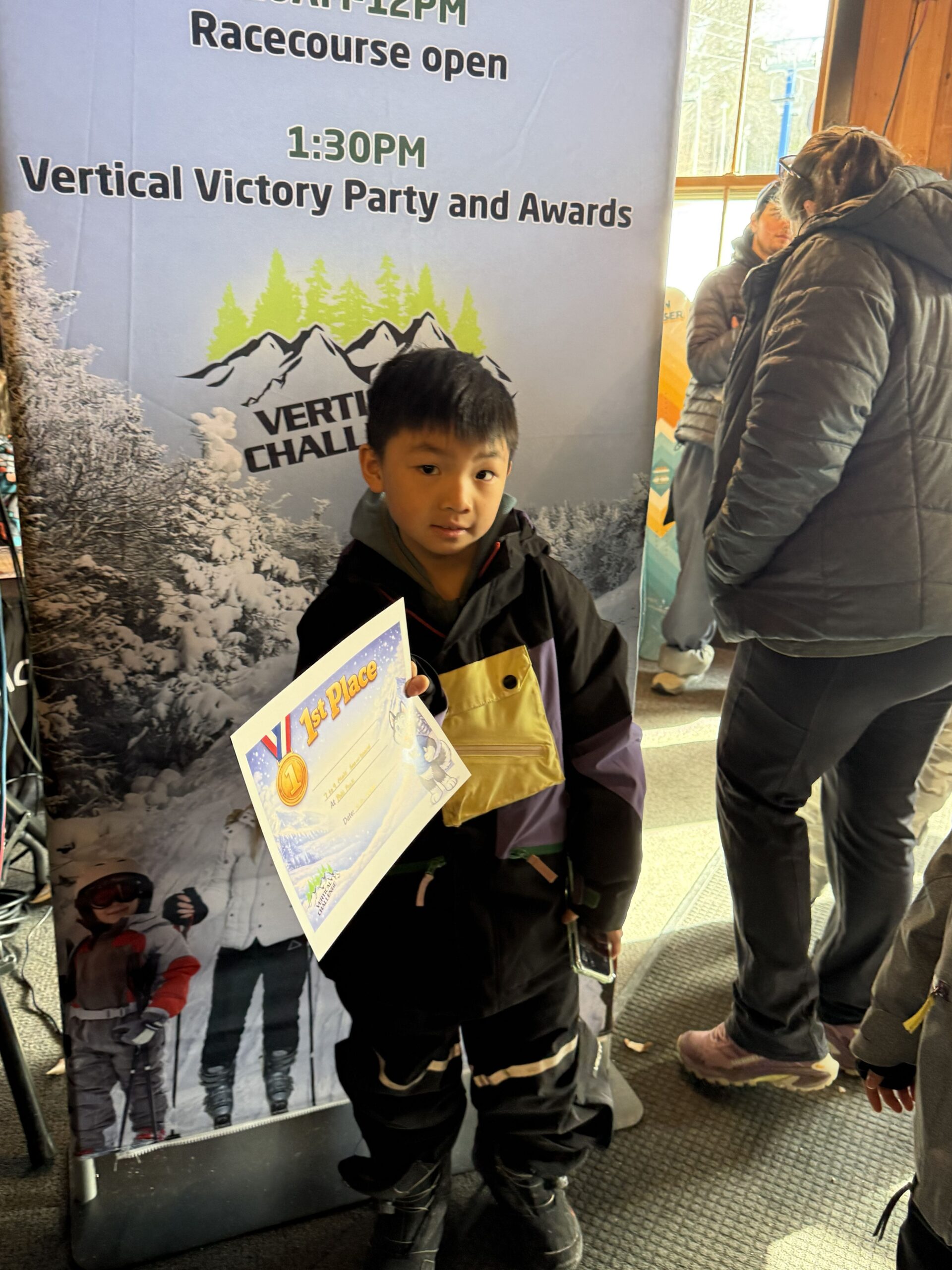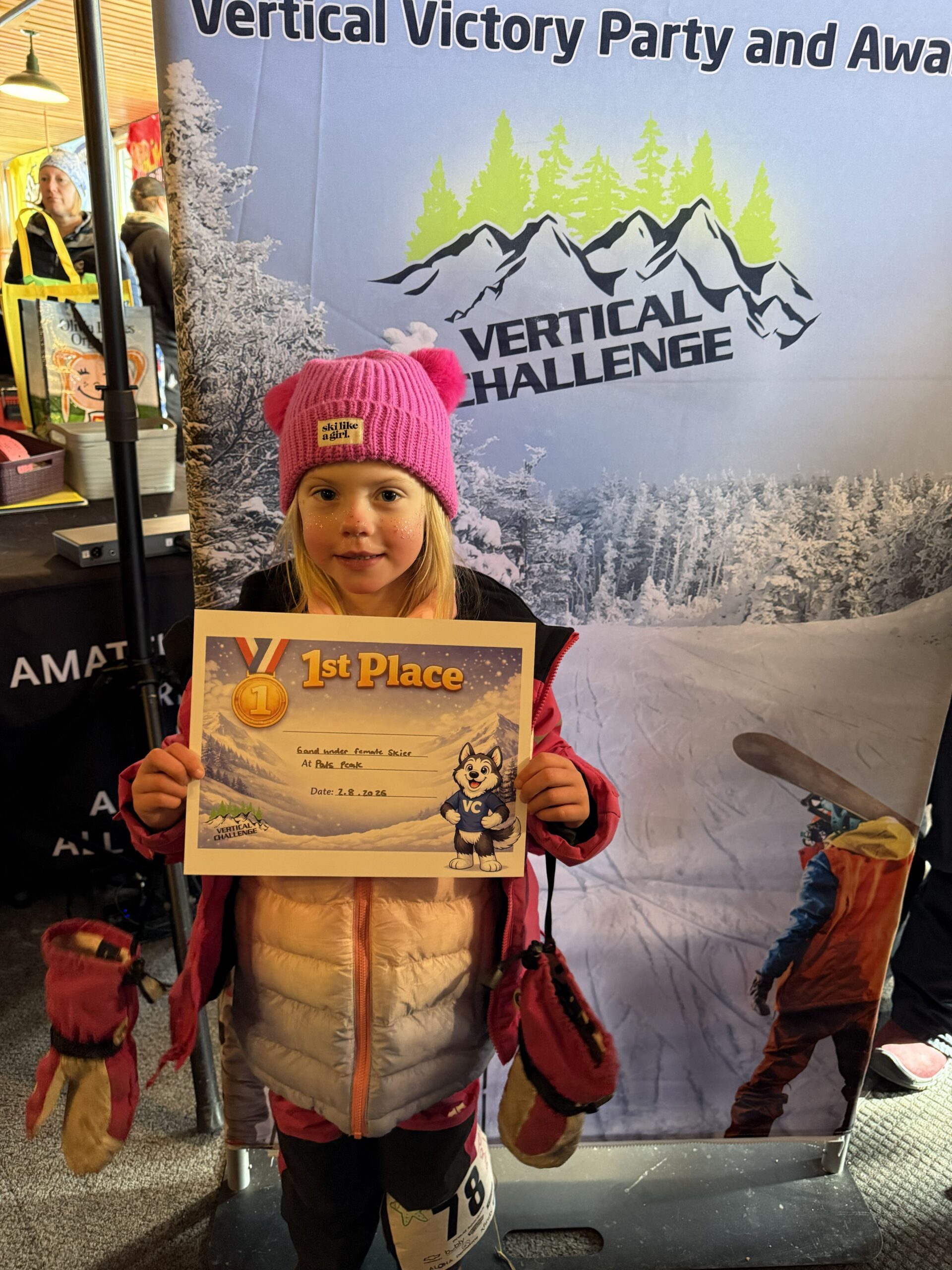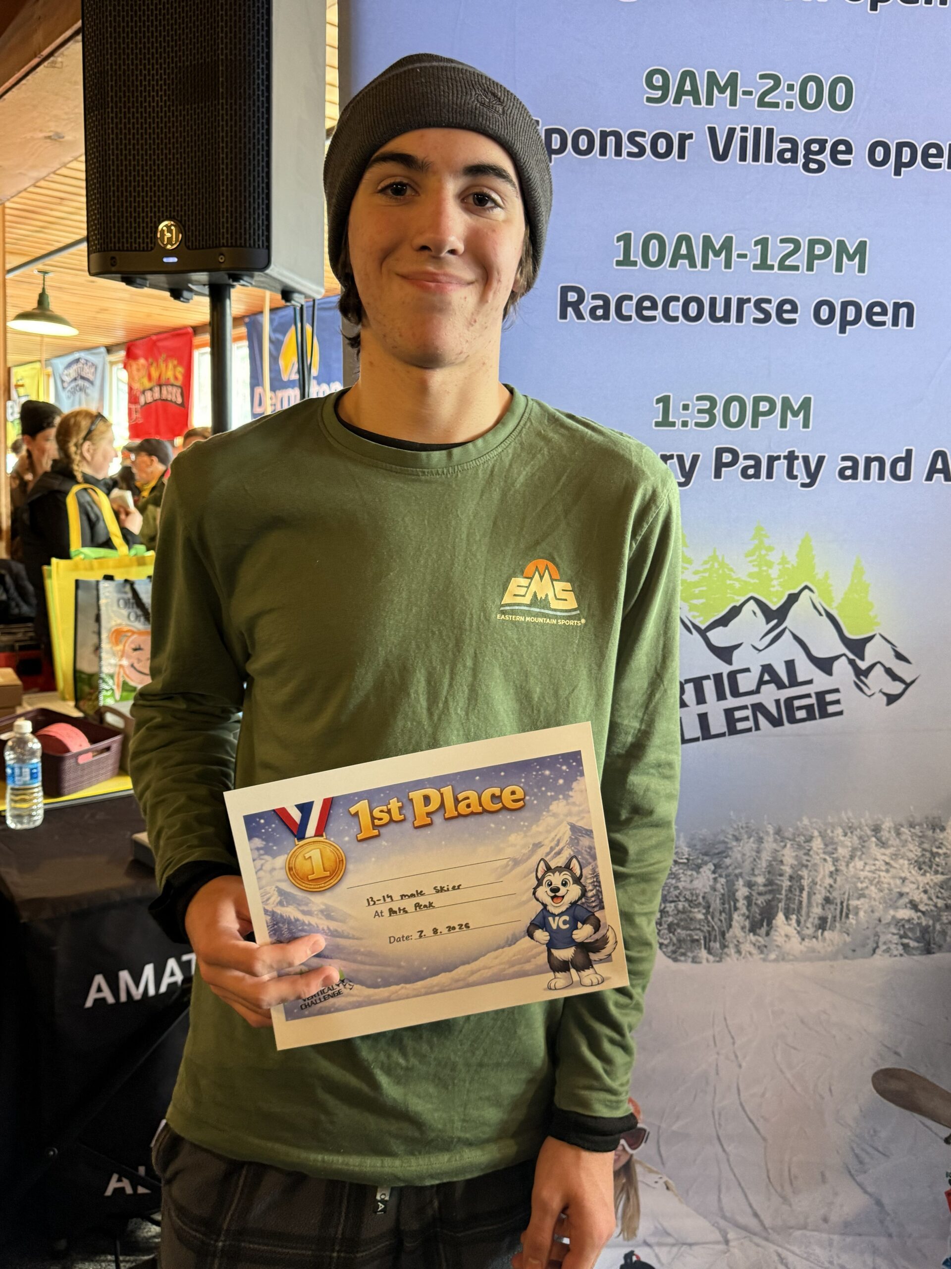 Photos from the Vertical Challenge race at Pats Peak, NH on February 8, 2026. Ski and snowboard racing, family fun, and classic New England mountain conditions.